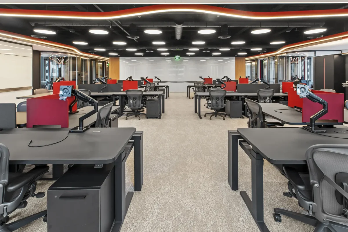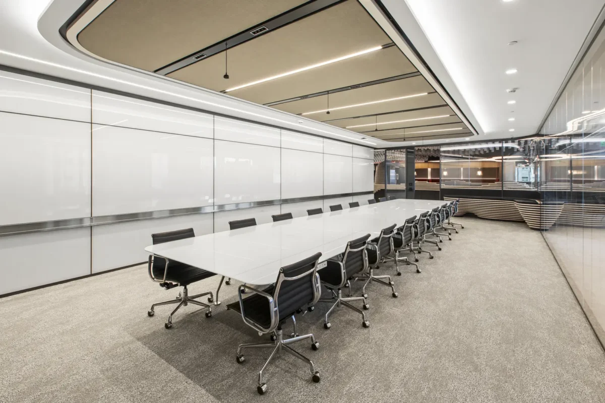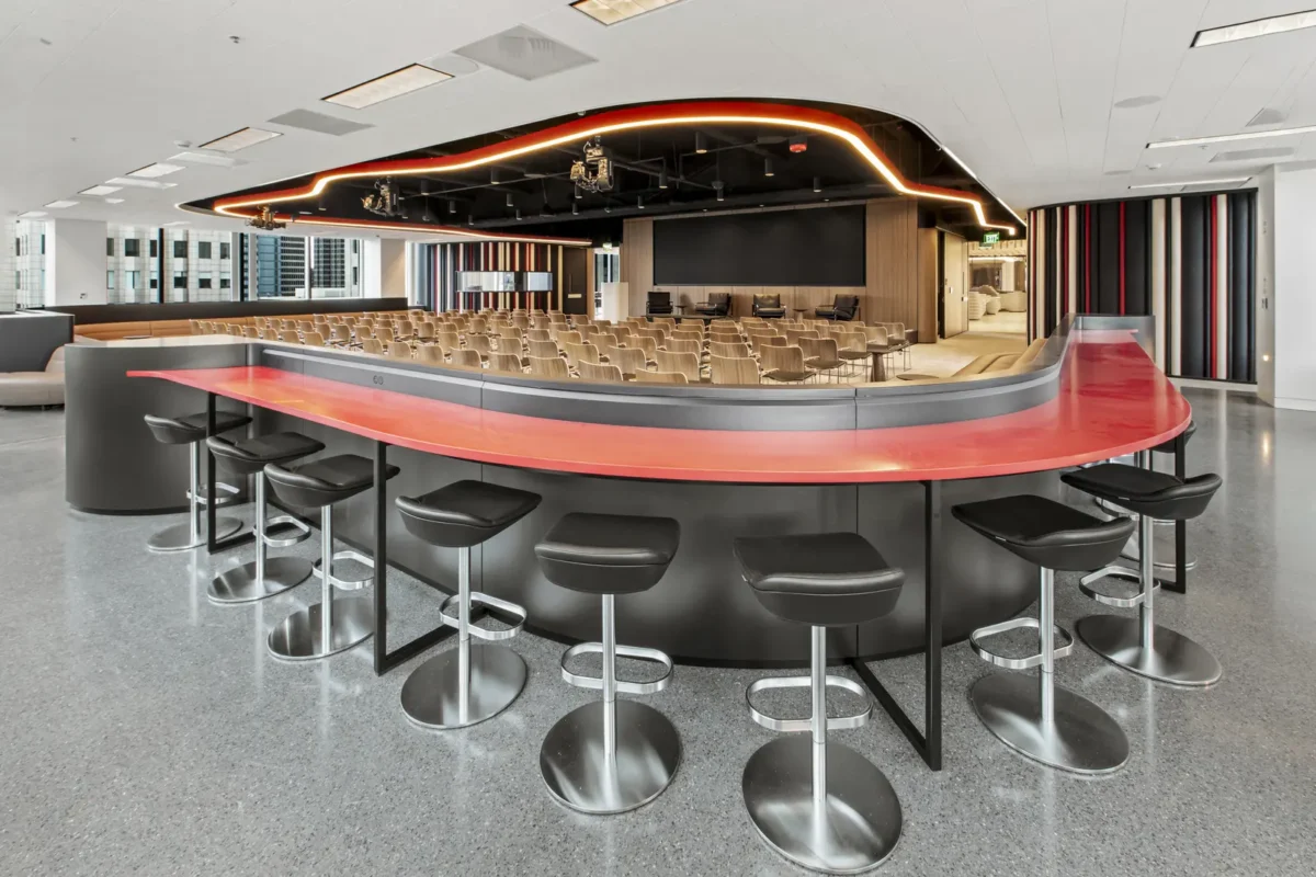 Global Relay One Bush Plaza is a 15,000 square foot tenant improvement that transforms a full floor of the iconic 1959 International Style landmark at One Bush Plaza into a next-generation corporate destination. The project redefines the modern office by functioning simultaneously as a brand experience center, hospitality venue, conference facility, and professional broadcasting hub.